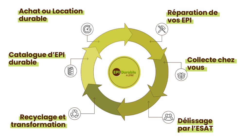 4- La collecte et le recyclage : Nous récupérons vos EPI usagés afin qu’ils ne finissent pas en déchetterie incinérés ou enfouis.